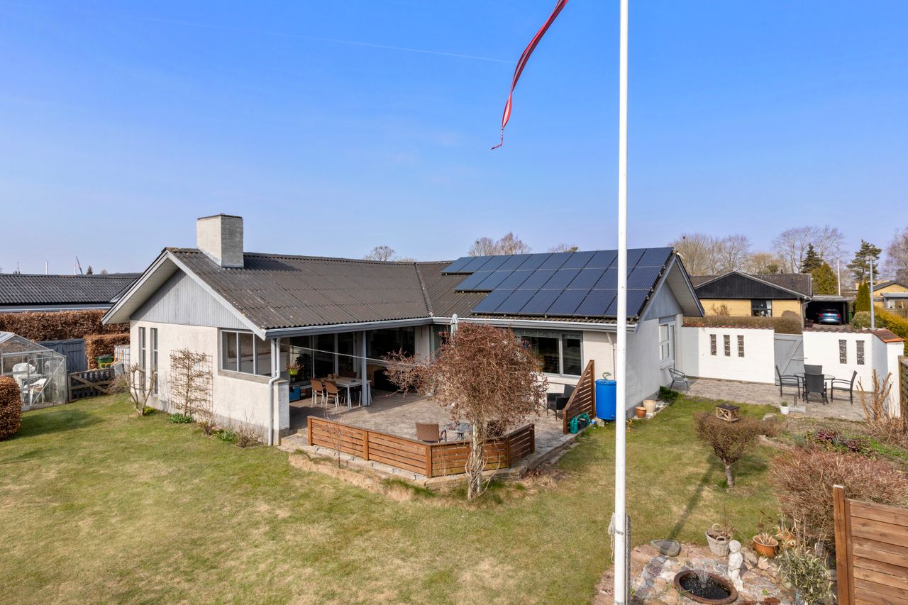 Huset er udstyret med solceller fra 2012 (4,6 KW) og ny inverter fra 2021. I det hele taget har huset en flot energimærkning C. Til huset hører en stor isoleret garage på 37 m2.