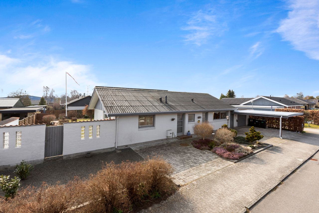 Her er et boligareal på 138m2. Store lyse stuer, nyere køkken fra 2018, 3 gode værelser og skønne opholdsarealer i haven med b.la. flere fliseterrasser med- og uden overdækning. Flere af vinduespartierne er nye, b.la. de store vinduer og terrassedør i stuen samt køkkenet er fra 2018