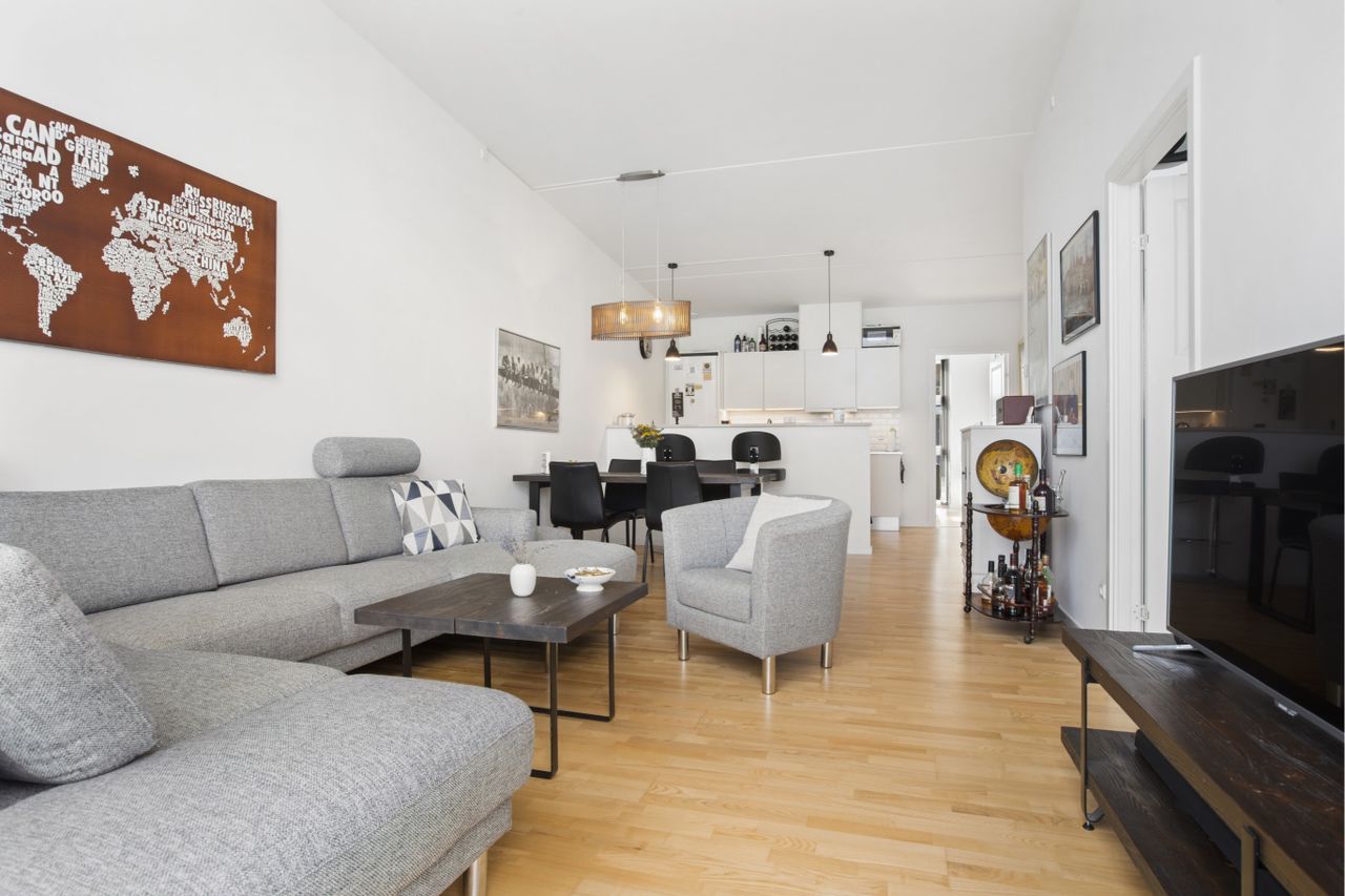 dejligt lysindfald og en fantastisk rumfølelse og en god planløsning.