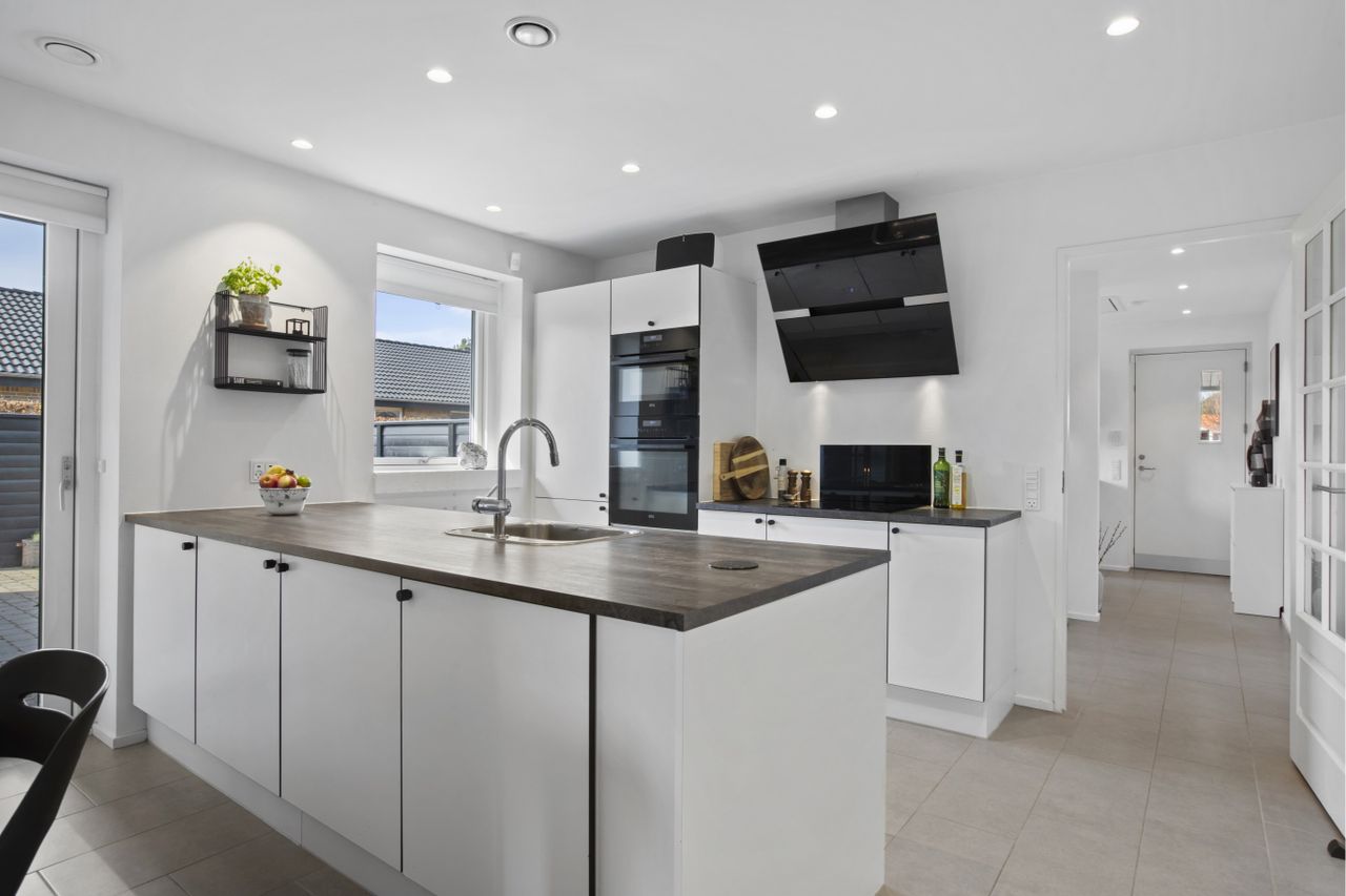 undgår spildplads. Den er via et flot bryggers/teknikrum. Her er et dejligt køkken-alrum i sammenhæng